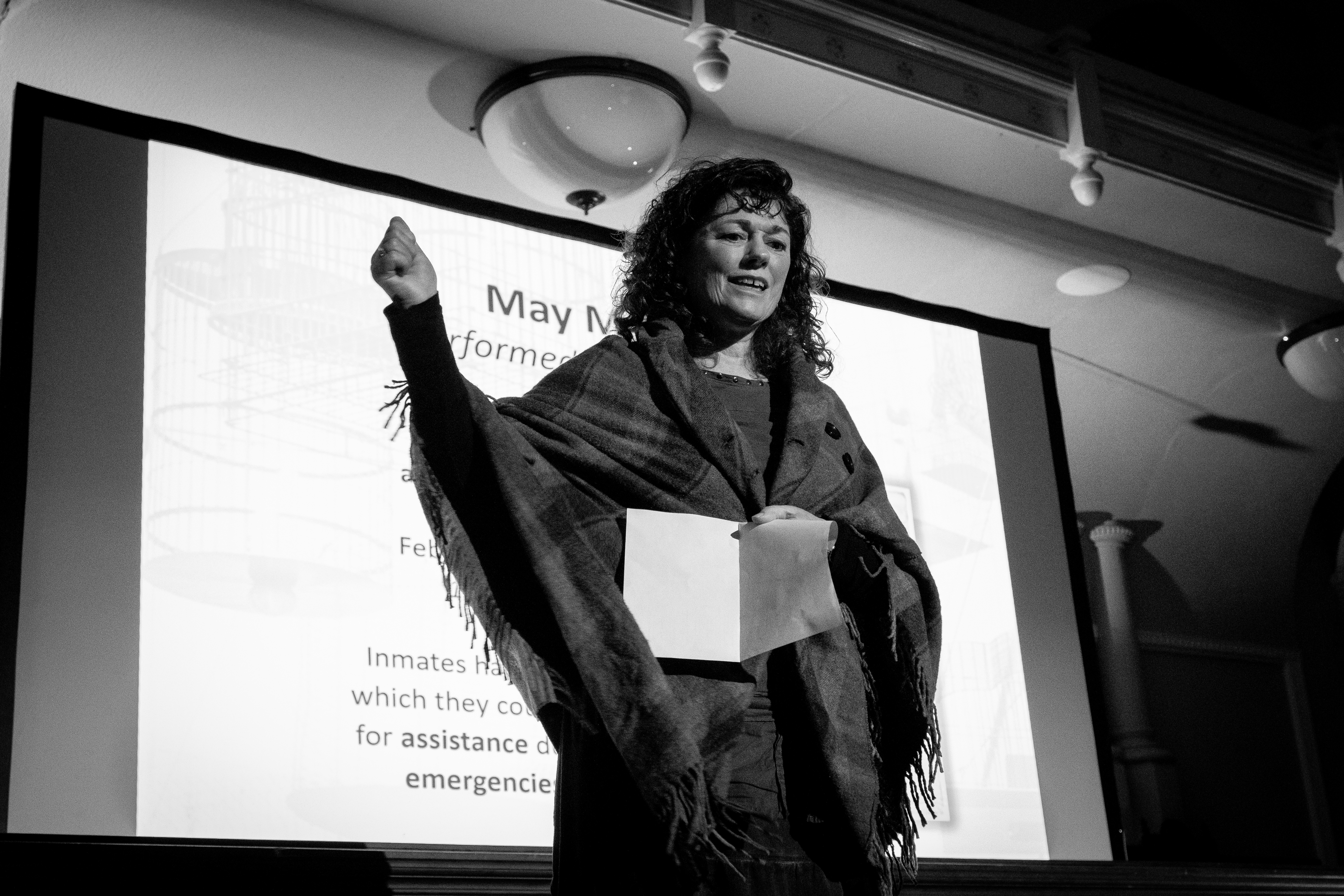 On March 8th 2020, International Women’s Day, I celebrated the launch of a book that took me 4 years to research and write. The launch took place in the old courtroom in Middlesbrough Town Hall – an event produced by Kirsten Luckins. 11 other performers and poetry friends from the Tees Women Poets helped me to bring the poems alive on stage in a packed venue. After the performance, we invited audience members to make the ominous descent down the stairs from the courtroom to the police cells where I did a book signing. Fortunately they didn’t lock me in for the night!