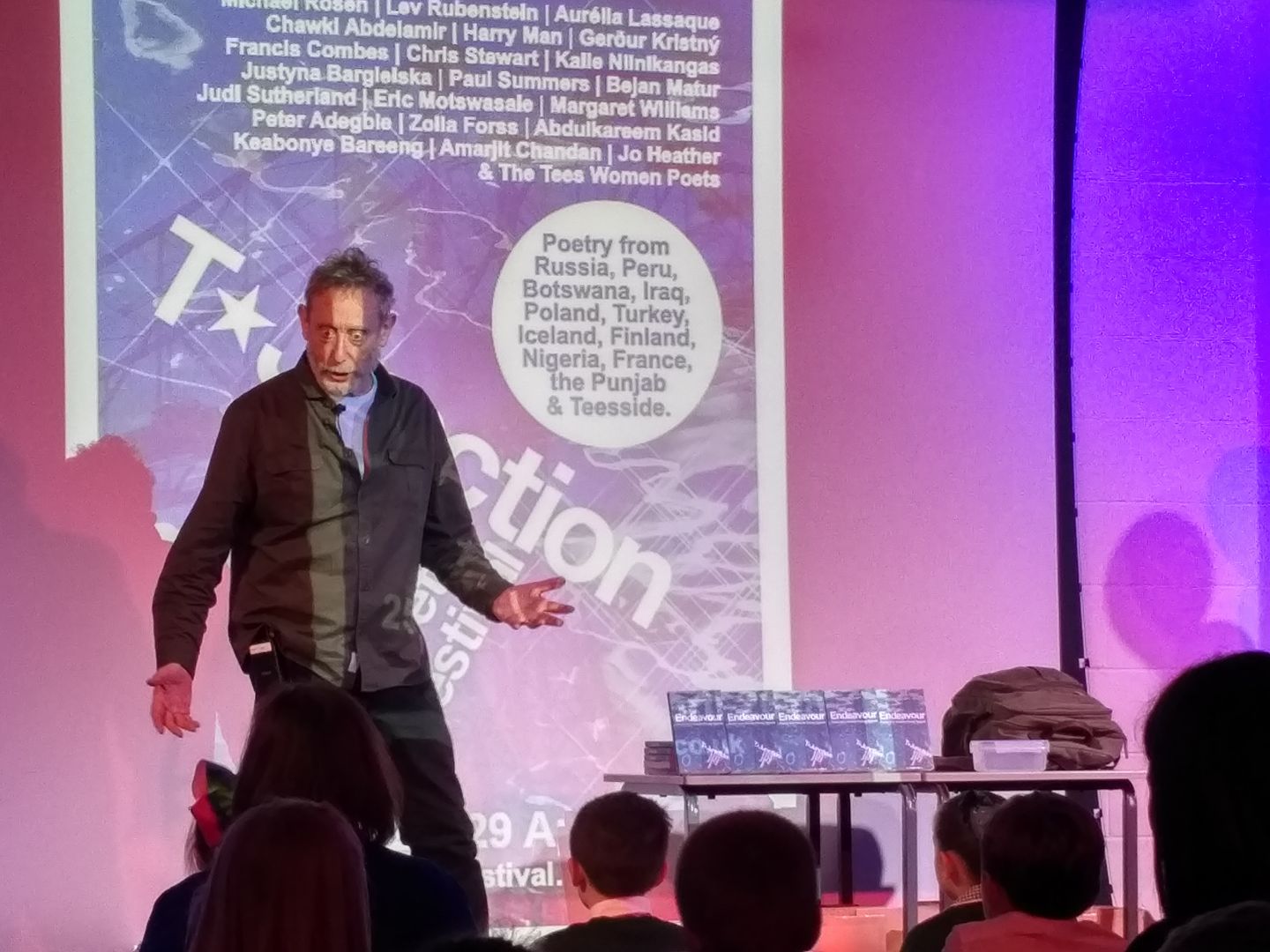 In April 2018, I was commissioned to work alongside other poets, including Michael Rosen, as one of the visiting ‘Poets in Schools’ as part of the educational programme organised by Inspire2Learn for T-junction Poetry Festival. I designed workshops for six primary schools in the Redcar and Cleveland area (some of which were in deprived areas), themed around travel and exploration, celebrating the 250th anniversary year of Captain James Cook’s first voyage around the world on HMS Endeavour. Pupils aged from 6 to 10 years all contributed their poems and I helped to edit them for an anthology which was published by Sixth Element and launched at an event hosted by Michael Rosen.