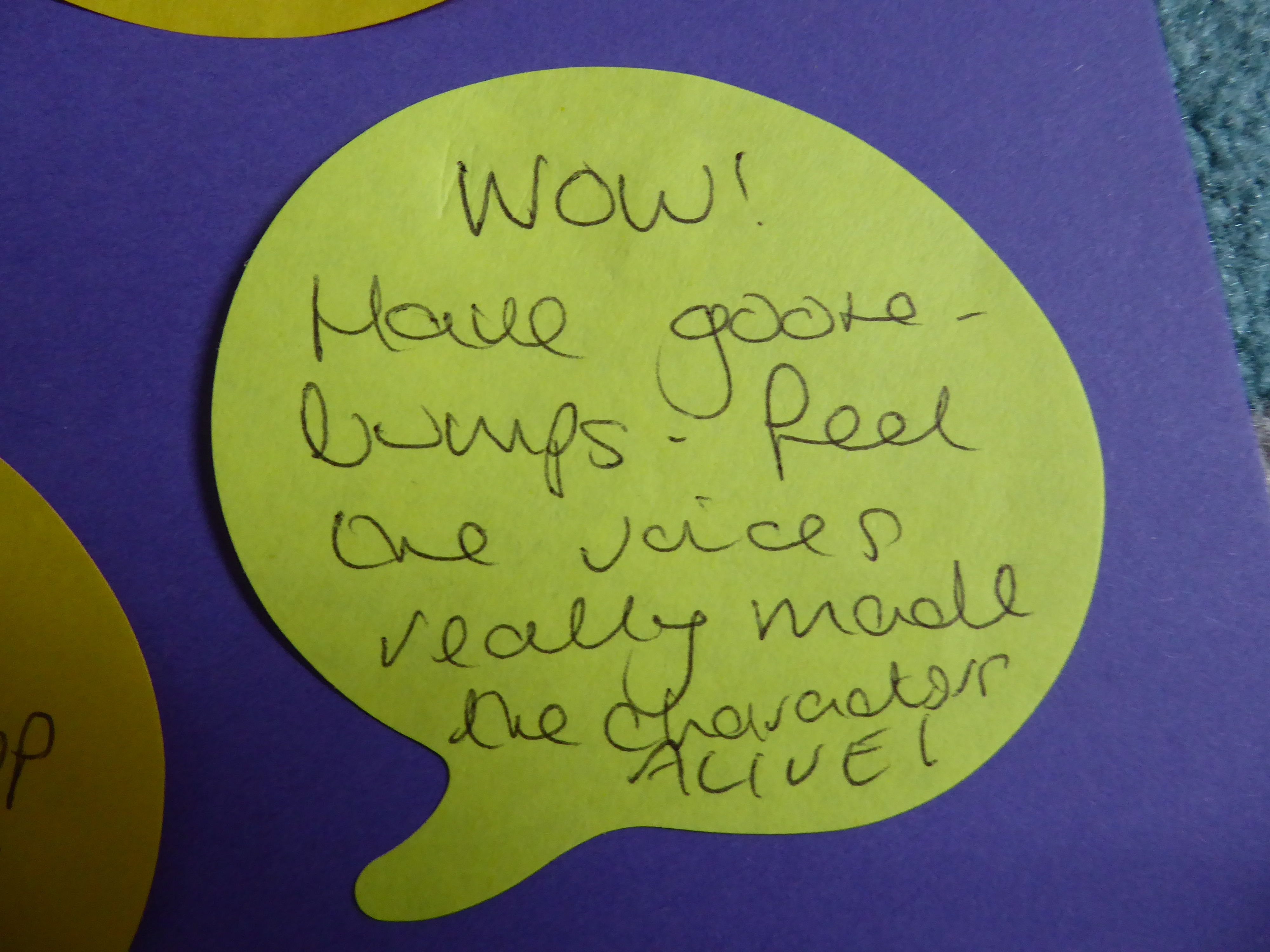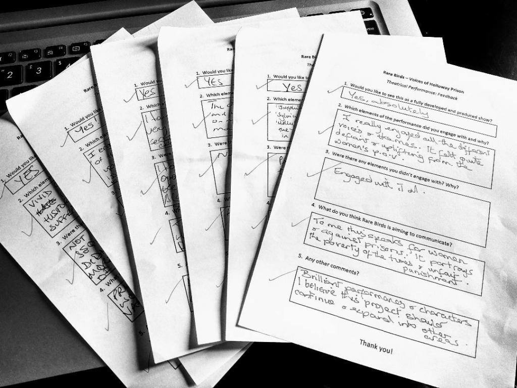 Members of the Prison Reform Trust who were in attendance said that there was great potential to take the performance into prisons and use it to work with prisoners. This is an idea I discussed with Michael Webborn, with a view to us collaborating on this and creating a series of 6 workshops using the format of Rare Birds as a starting point, which enabled participants to write their own stories and have them musicalized and performed. I am hoping to secure further funding to run this project.